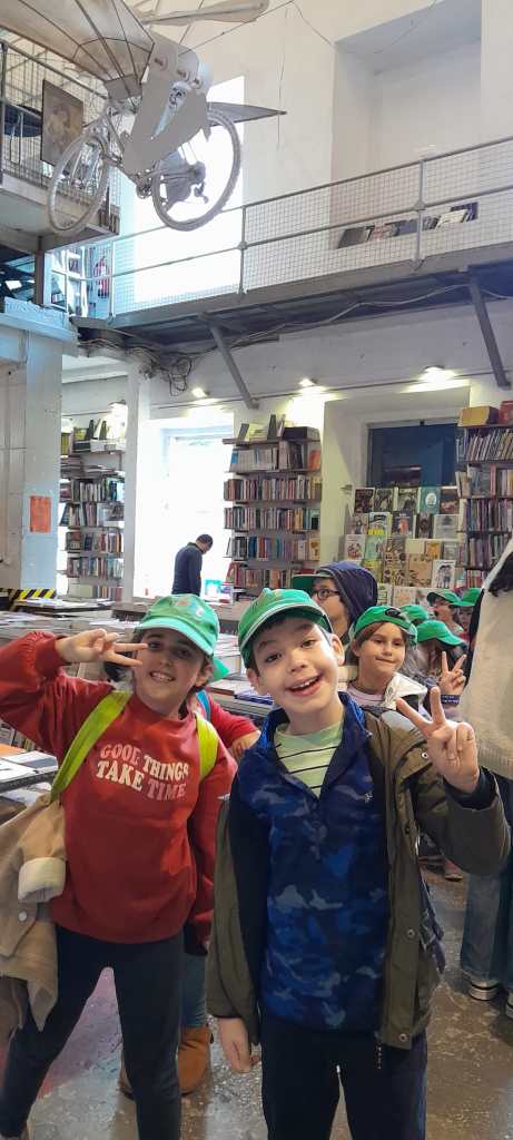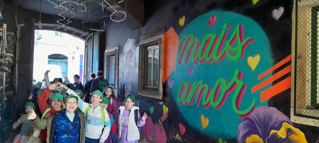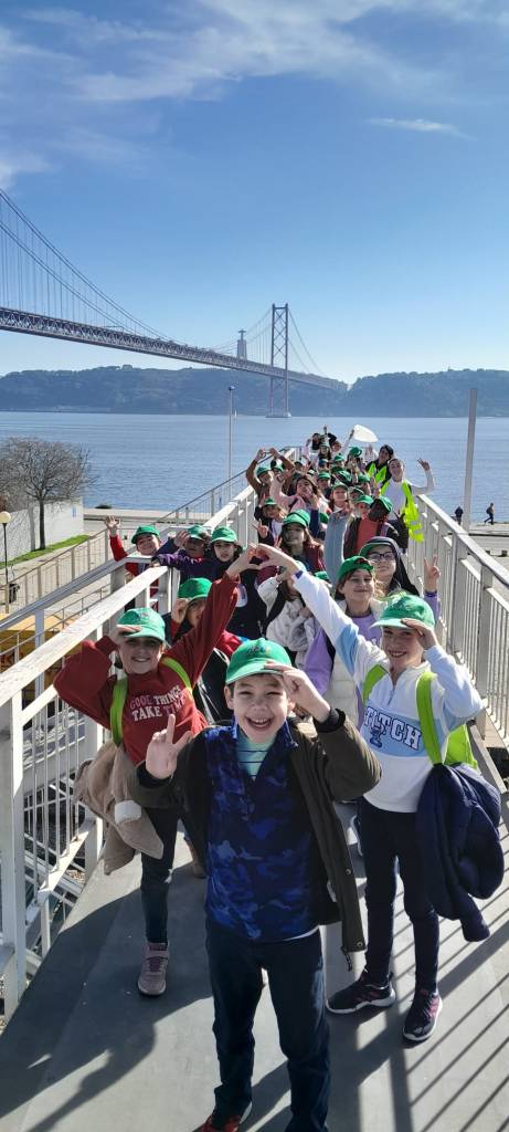 Na parte da tarde, visitámos a LX Factory, em particular a livraria Ler Devagar. Por lá encontrámos o William, o nosso antigo professor de AEC, com a seu caixa de Teatro sobre o famoso Elétrico 28! E muitos turistas, claro…