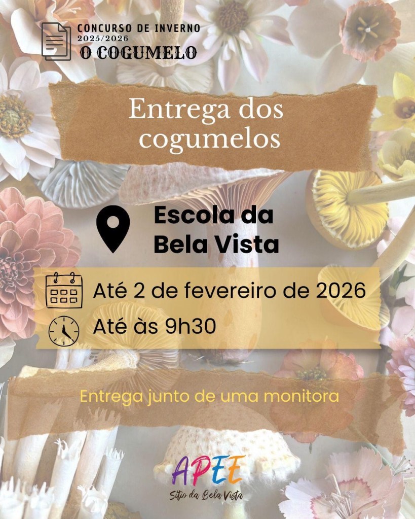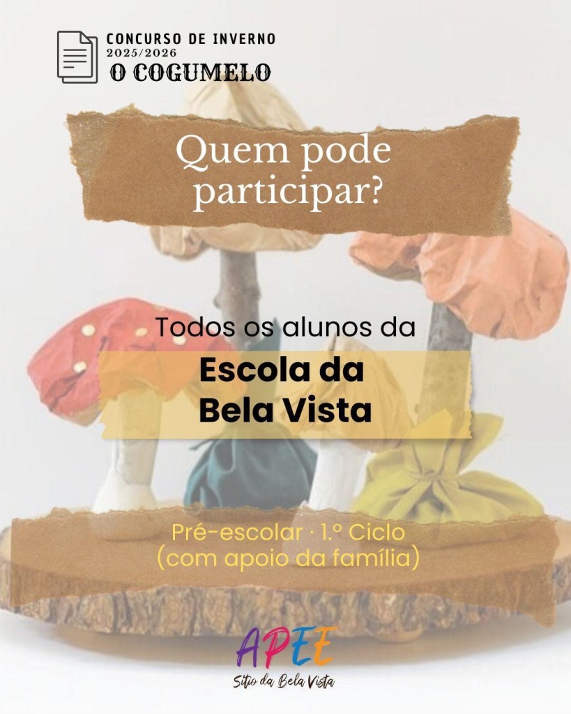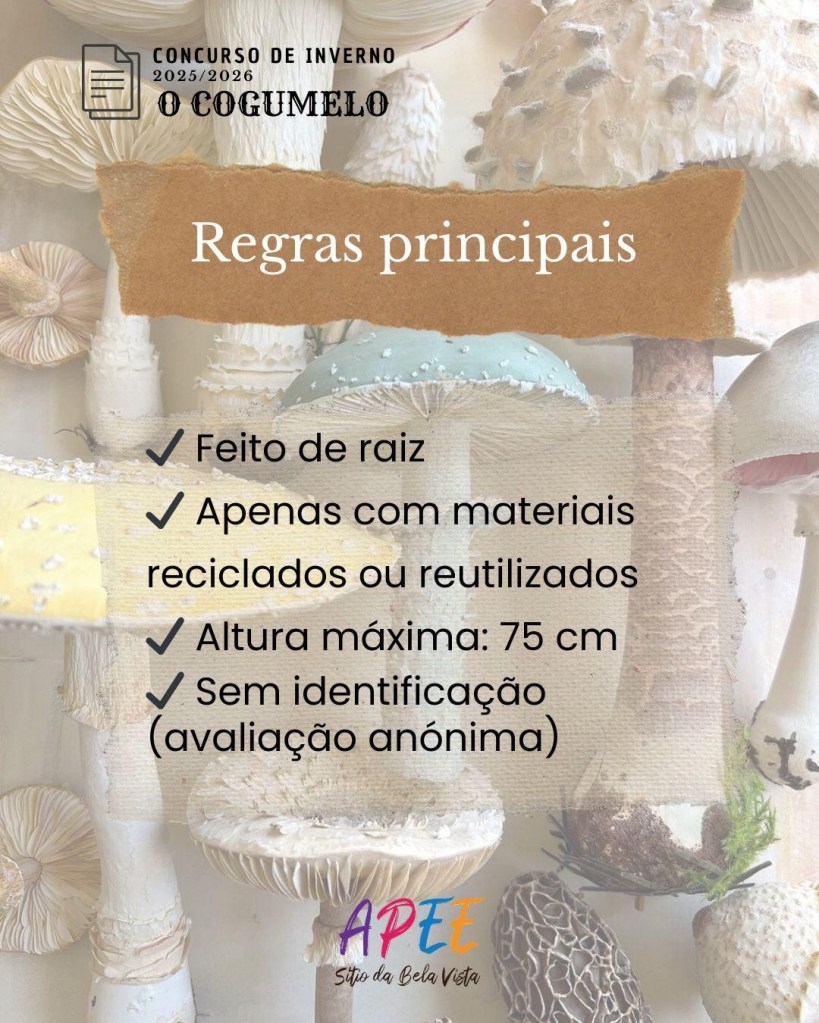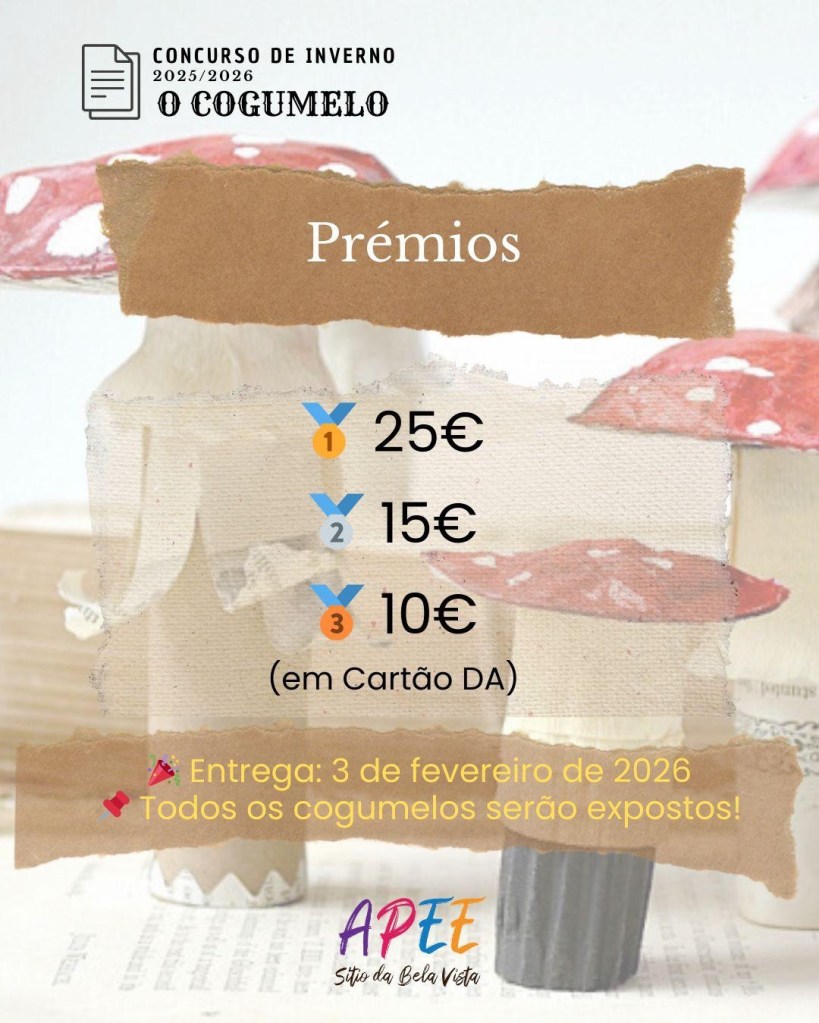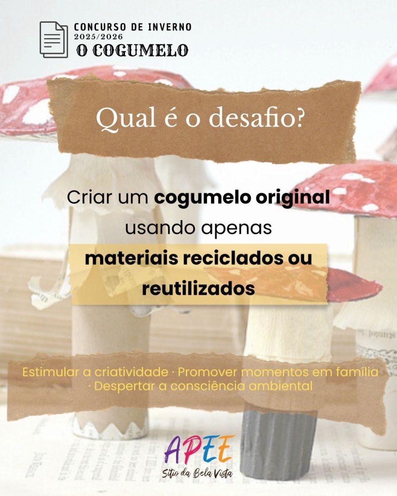 Blogue O Concurso mais esperado do ano! O DESAFIO DO CONCURSO QUEM PODE PARTICIPAR? AS REGRAS! ONDE/A QUEM ENTREGAR COMO VOTAR NO TEU COGUMELO PREFERIDO OS PRÉMIOOOOOOS!!! Concurso Brincadeiras Sustentáveis _Cogumelo.pdfConsultar o Regulamento do Concurso Partilhar isto: Share on X (Abre numa nova janela) X Partilhar no Facebook (Abre numa nova janela) Facebook Imprimir (Abre numa nova janela) Imprimir Share on WhatsApp (Abre numa nova janela) WhatsApp Email a link to a friend (Abre numa nova janela) E-mail Gosto Carregando...